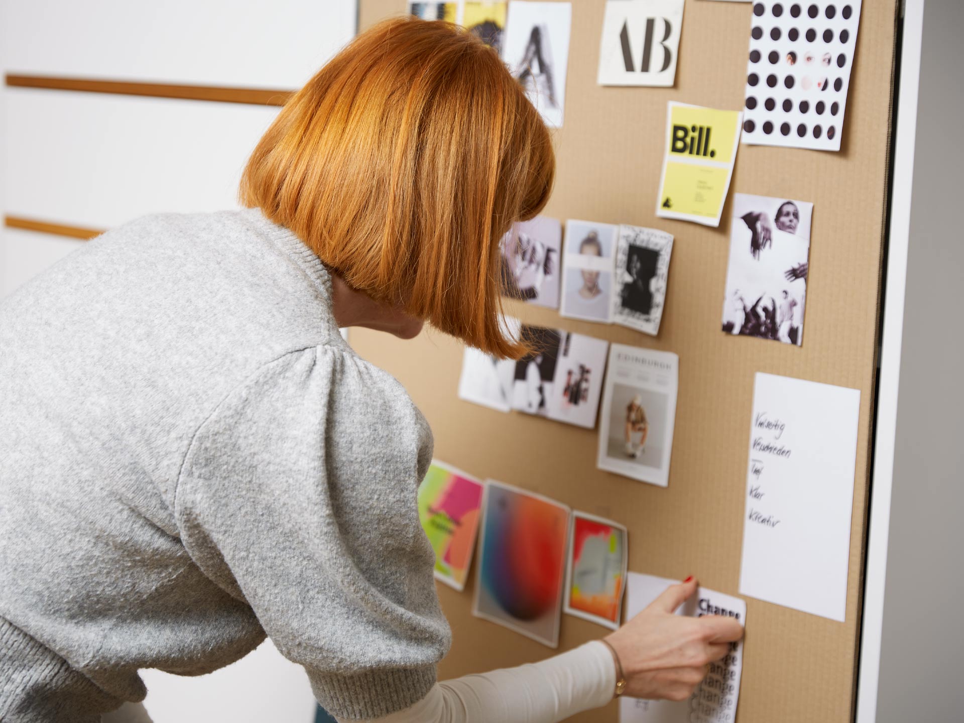 Der Funke war gezündet, jetzt ging es ans Verdichten. Die beiden hängten ihre ausgewählten Moods an die Wände – eine Sammlung aus Farben, Schriftanmutungen und atmosphärischen Bildern, bereit für den gemeinsamen Blick.